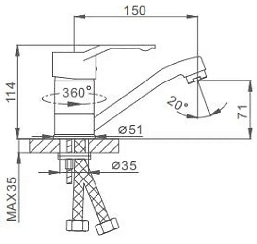 - Длина излива: 15 см.