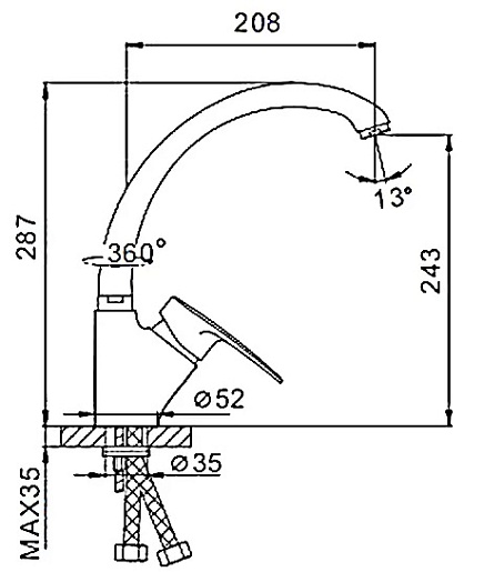 - Длина излива: 20.8 см.