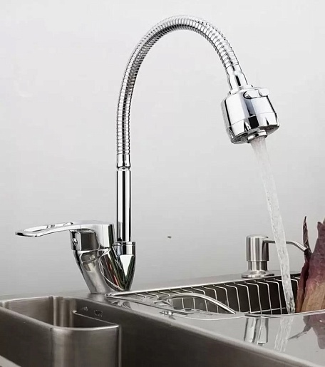 - Гибкий излив более маневренный, чем обычный, и позволяет настроить высоту и угол излива под любые нужды.