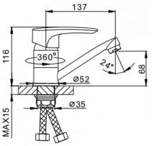 - Длина излива: 13.7 см.