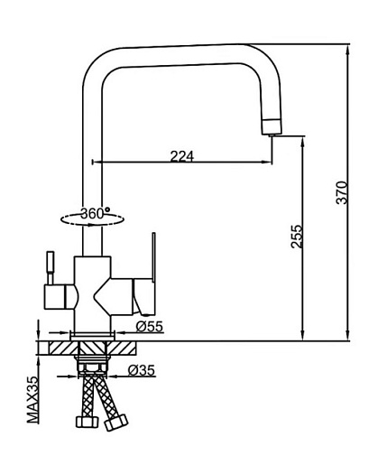 - Подача питьевой воды: через совмещенный излив.