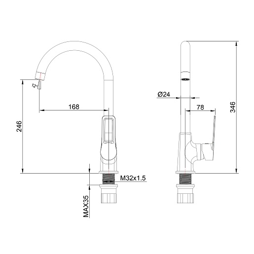 Высота излива, мм: