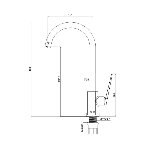 Высота излива, мм: