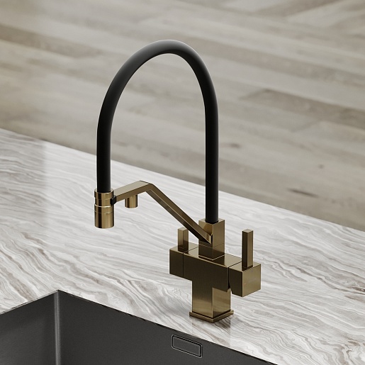 - Гибкий излив более маневренный, чем обычный, и позволяет настроить высоту и угол излива под любые нужды.