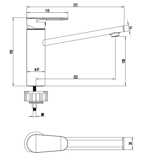 - Длина излива: 22.2 см.