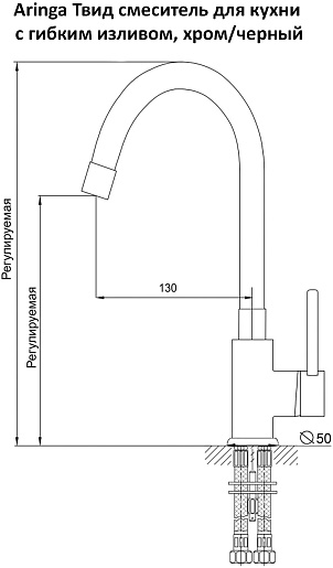 Aringa Смеситель для кухни Твид AR02023BL черный/хром