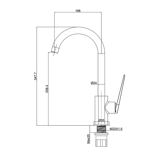 Высота излива, мм: