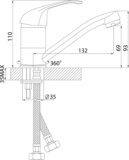 - Универсальная присоединительная группа для горизонтального крепления (возможно крепление гайкой, гайка приобретается отдельно.).