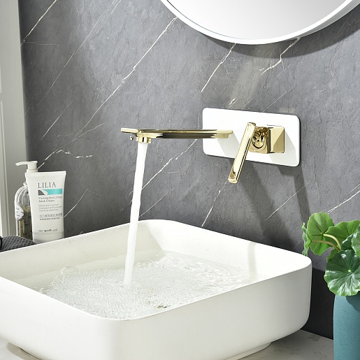 Lemark Смеситель для раковины чаши Mista LM6426WG встраиваемый белый/золото