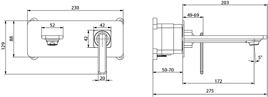 Длина излива, мм: