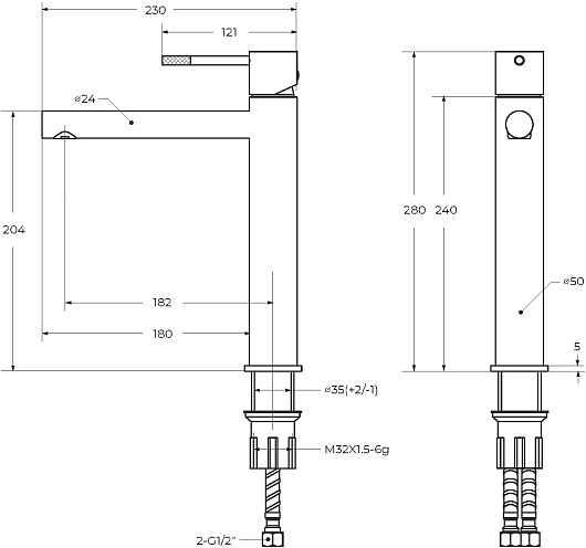- Стандарт подводки: G1/2.
