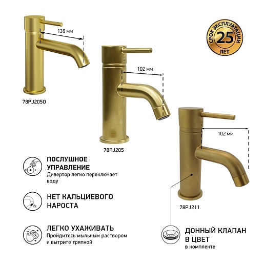Paini Смеситель для раковины Cox 78PJ205O брашированное золото