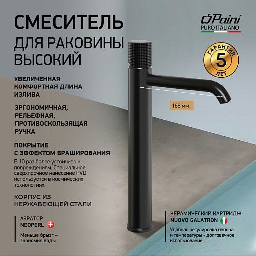 Paini Смеситель для раковины Cox grip 7GPZ205OLL высокий, брашированный чёрный