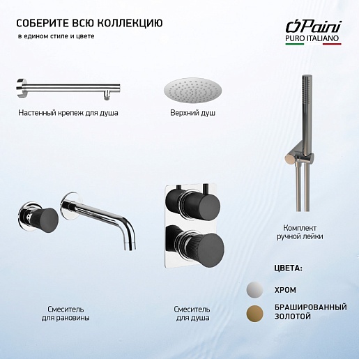 Paini Смеситель для раковины Domus 18CR208PZ встраиваемый, хром/брашированный чёрный