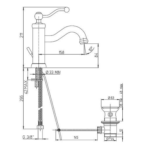 Paini Смеситель для раковины Duomo 88OP211 с донным клапаном, золото PVD (OP)