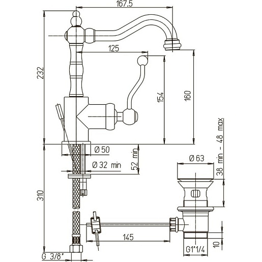 Paini Смеситель для раковины Duomo 88OP250 с д/к, золото