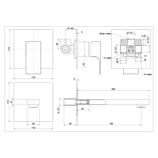 Paini Смеситель для раковины Grazia 21PZ208 встраиваемый, брашированный чёрный