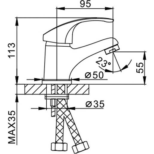 - Высота излива: 5.5 см.
