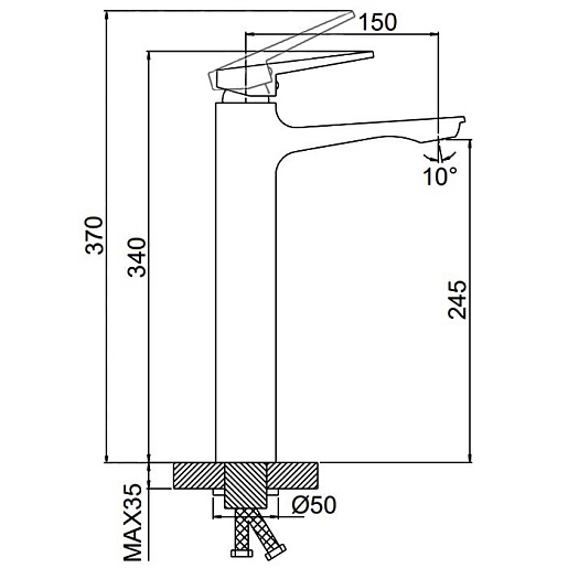- Высота излива: 24.5 см.