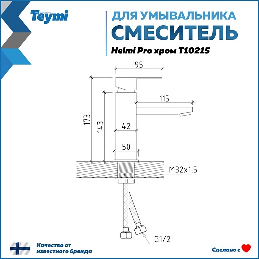 Teymi Смеситель для раковины Helmi Pro T10215 хром
