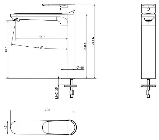 - Высота излива: 18.7 см.
