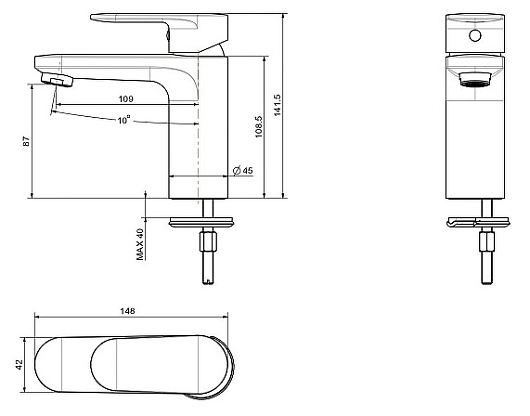 - Высота излива: 8.7 см.