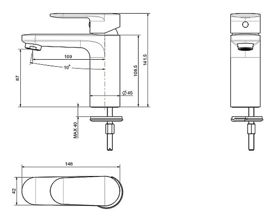 - Высота излива: 8.7 см.