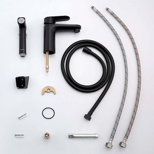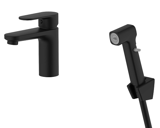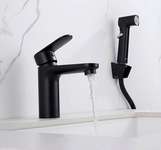 Aquatek Смеситель для раковины Ника AQ1812MB с гигиеническим душем, чёрный матовый