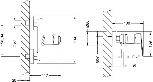 Комплектация: смеситель, душевая лейка, душевой шланг, держатель лейки, комплект эксцентриков с отражателями.
