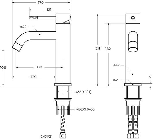 - Стандарт подводки: G1/2.