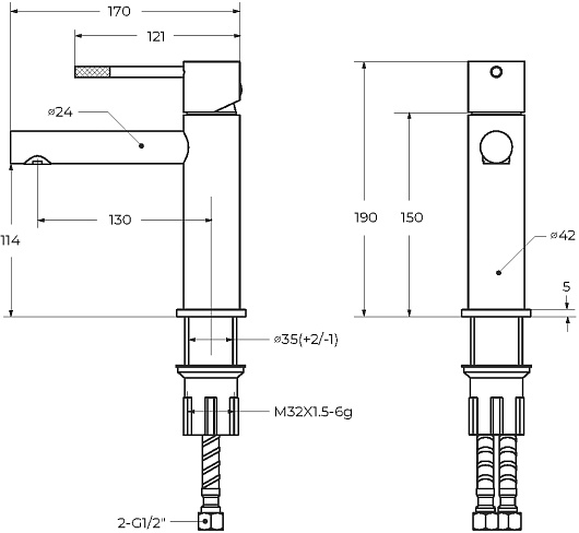 - Стандарт подводки: G1/2.
