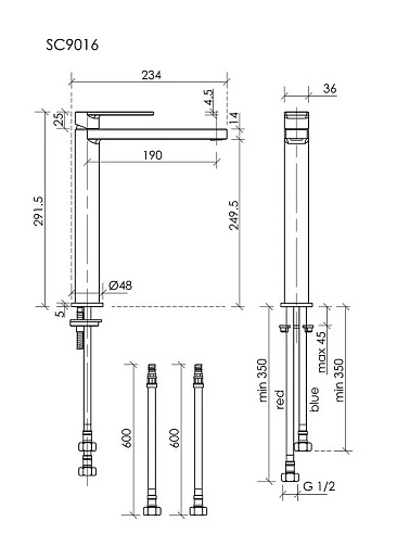 - Высота излива: 24.95 см.