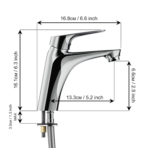 - Хромовое покрытие защищает латунный корпус от коррозии.