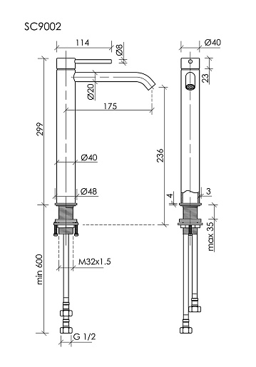 - Высота излива: 23.6 см.