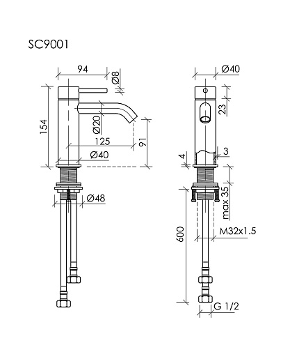 - Высота излива: 9.1 см.