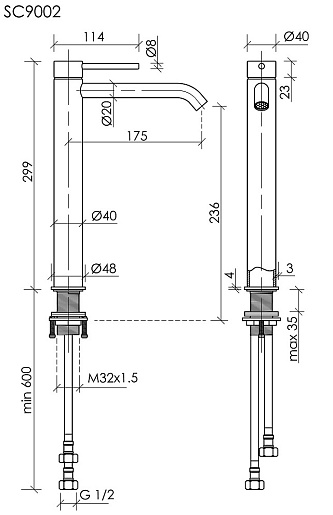 - Высота излива: 23.6 см.