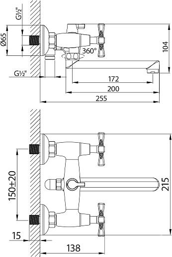 Комплектация: смеситель, душевая лейка, душевой шланг, держатель лейки, комплект эксцентриков с отражателями.