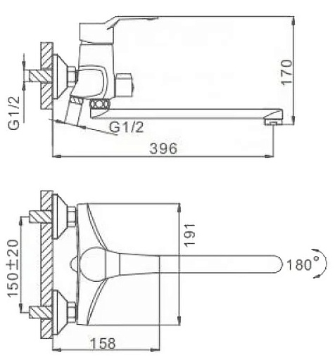 - Длина излива: 39.6 см.