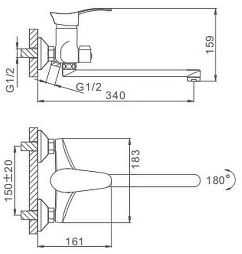 - Длина излива: 34 см.