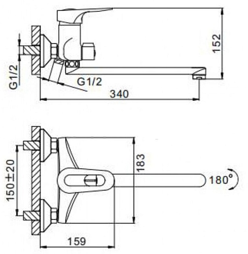 - Длина излива: 34 см.