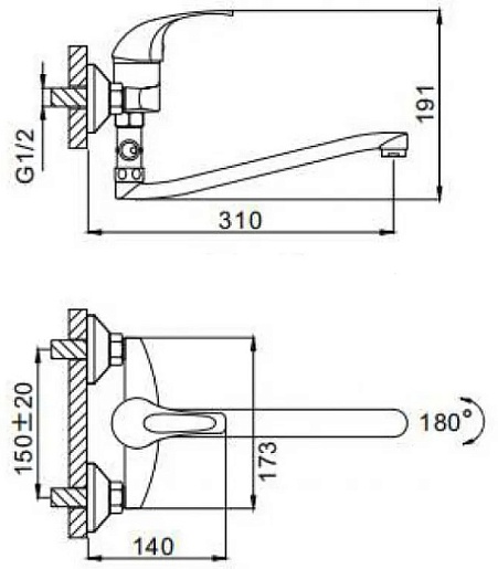 - Длина излива: 31 см.