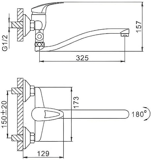 - Длина излива: 32.5 см.