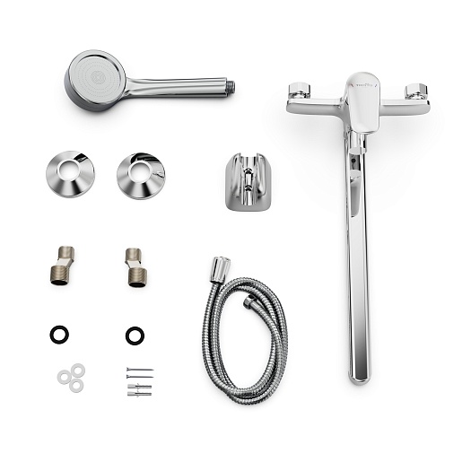 - в комплект входит душевая лейка с держателем и хромированный шланг из нержавеющей стали.