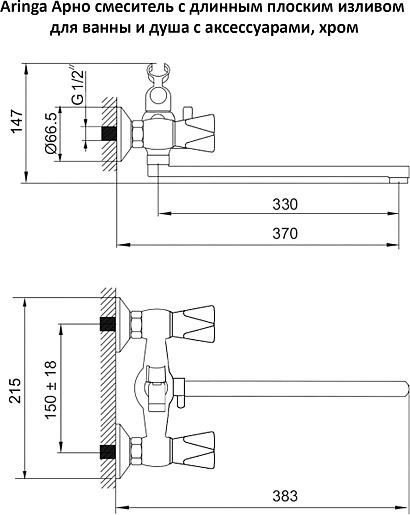 Aringa Смеситель для ванны и душа Арно AR02025CH универсальный хром