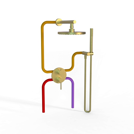 Paini Смеситель для ванны и душа Cox 78PJSET26911SH с верхним душем и душ. гарнитуром, встраиваемый, брошированное золото