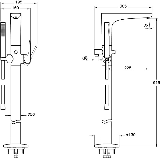 Напольный смеситель для ванны и душа Vitra Root Round A42741EXP.