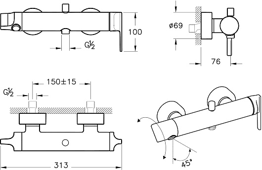 Vitra Смеситель для ванны и душа Suit A42488EXP хром