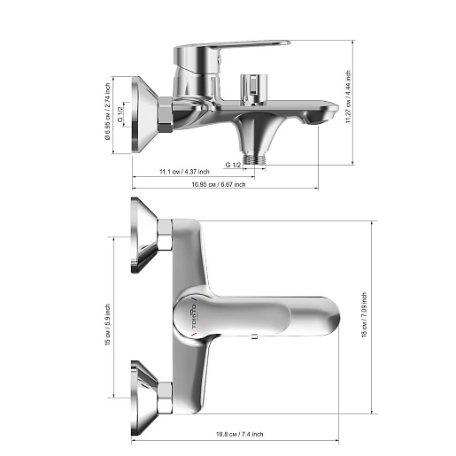 Tokito Смеситель для ванны KANDA хром TOK-KAN-1014