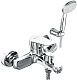 Комплектация: смеситель, душевая лейка, душевой шланг, держатель лейки, комплект эксцентриков с отражателями.