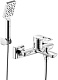 В комплекте: смеситель, душевая лейка, душевой шланг, держатель лейки, комплект эксцентриков с отражателями.